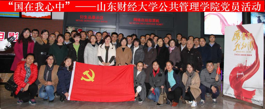 (通讯员 吕晓燕 李昭娜)为加深对习近平新时代中国特色社会主义思想和十九大精神的学习领悟,了解十八大以来中国的发展成果和前行轨迹,3月15日下午,公共管理学院党委开展了“国在我心中”党员实践活动,组织47名教工党员走进影院,观看纪录片《厉害了,我的国》,活动得到了教工党员的积极响应。