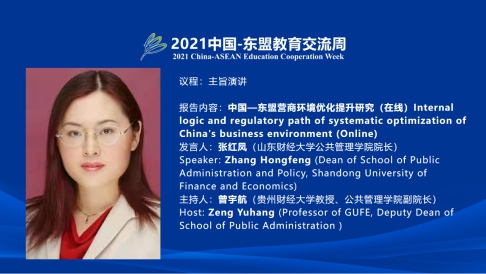 (通讯员 孙敬华)2021年9月24日,受贵州财经大学公共管理学院的邀请,我院院长张红凤教授线上参加了由中国-东盟教育交流周组委会、贵州财经大学主办,贵州财经大学公共管理学院承办的“中国-东盟营商环境治理人才培养论坛”。来自中国-东盟政府机构、海内外高校、科研院所和社团组织的100多位领导、专家、学者参加本次论坛。