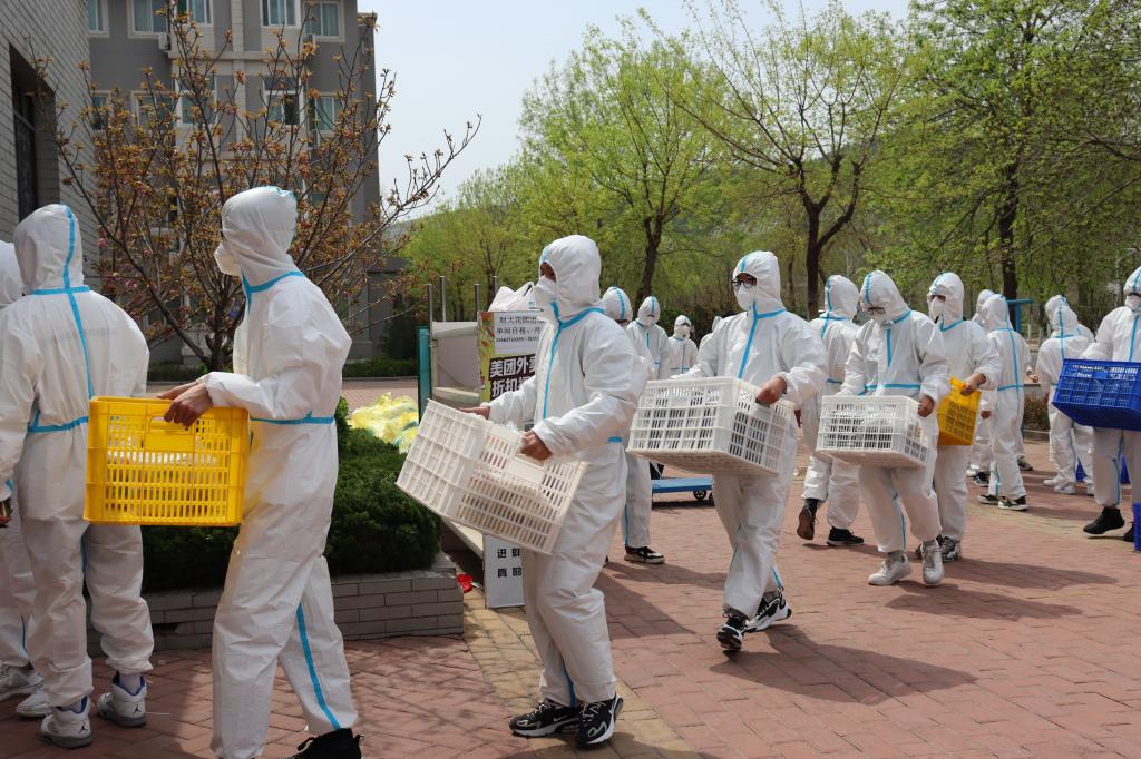 在接到送餐任务要求后,我院积极响应,由辅导员张辉、韩步彤进行组织安排。4月8日晚,公共管理学院40名志愿者收到疫情防护服和口罩,其中防护服一餐一套,严格保障食品安全,口罩分配专用防疫口罩,确保志愿者安全。接着学院对40名志愿者进行分组,第1组20名同学去二号餐厅装车;第2组20名同学在宿舍楼门口卸车并且按学院分餐。