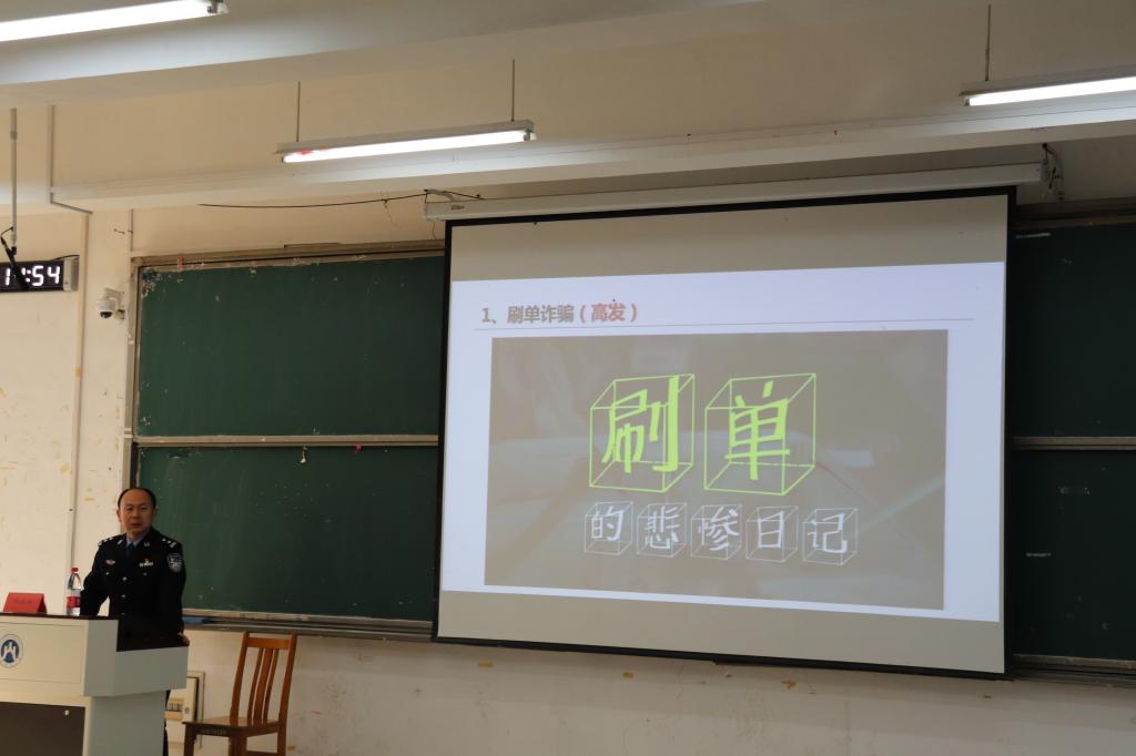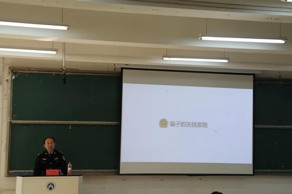 讲座过程中,代科长提出,随着时代的进步与科技的发展,传统案件发生率越来越低,新型电信网络诈骗案件数量火速上升,被诈骗金额急剧增加。他用真实的案例与具体的金额数字,提醒同学们们要提高自我防范意识,抵制虚假诱惑,注意个人财产安全。