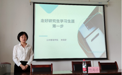 最后,贾院长以行政管理专业为例,详细介绍了该专业研究生课程设置情况,并鼓励大家专心专注,读万卷书,行万里路。