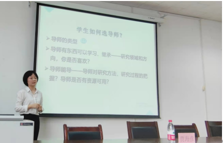 围绕“如何走好研究生学习生涯第一步”这一话题,从导师如何选学生,学生如何选导师以及研究生如何做学生三个方面贾海彦副院长展开了精彩讲述。从导师的角度阐述了聪明、勤奋,有良好的专业背景,能主动与导师交流沟通,能与同门师哥师姐建立良好友谊的学生更受导师青睐;将导师划分为学术成绩突出的学术型导师,勤于实践、资源丰富的事务型导师和隐士型导师,用简洁明了的语言让同学们认识到了各类老师的优点和长处;对研究生们提出了珍惜时间、守住底线、精心规划、培养塑造四个方面的要求和期望,并向大家分享了研究生三年即六个学期的详细规划,鼓励大家培养创新素质,学会团队合作,广泛阅读积累文献,积极参加社会实践以及规范论文写作等等。最后,向大家提出观察、提问、聆听、阅读、思考、写作、交流的十四字诀作为忠告。