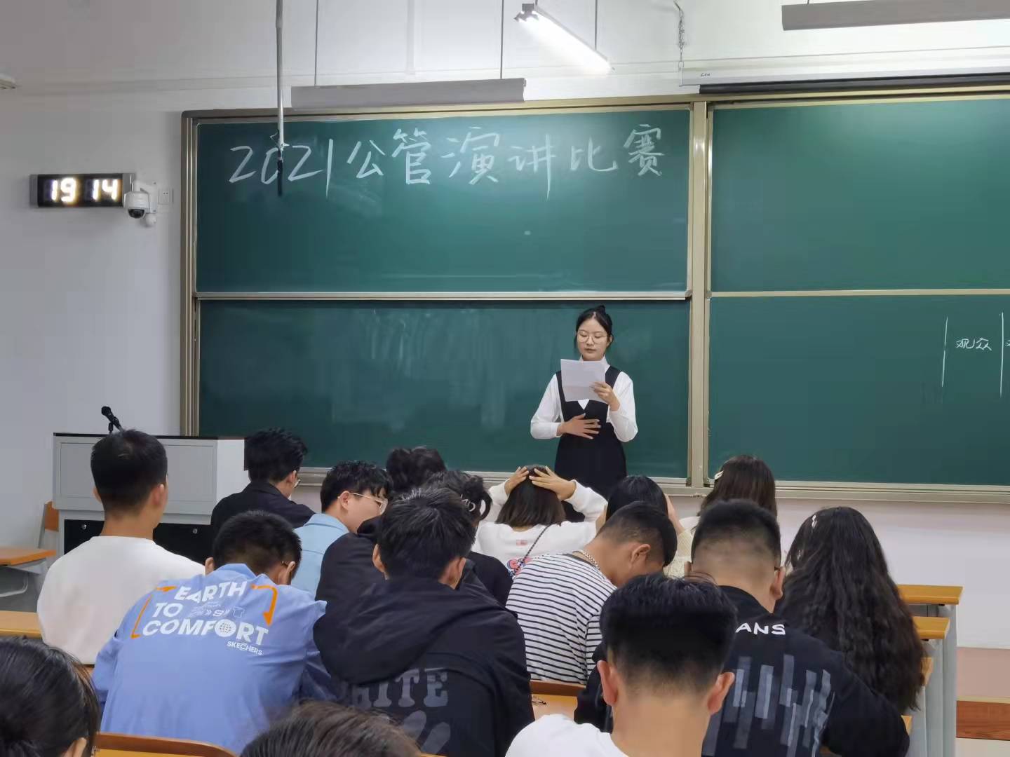 (通讯员 马丽 摄影 于泽 闫婕) 为进一步提高学生政治站位,增强爱党爱国意识,丰富学生课余生活,9月20日晚6点半,公共管理学院21级新生演讲比赛初选在圣井校区8212教室进行。此次比赛由我院学生会主席团、文艺部同学担任评委,共有14位21级新同学参加。同学们分别以“不负青春”、“不负时代”、“不负韶华”为主题进行了精彩的演讲。