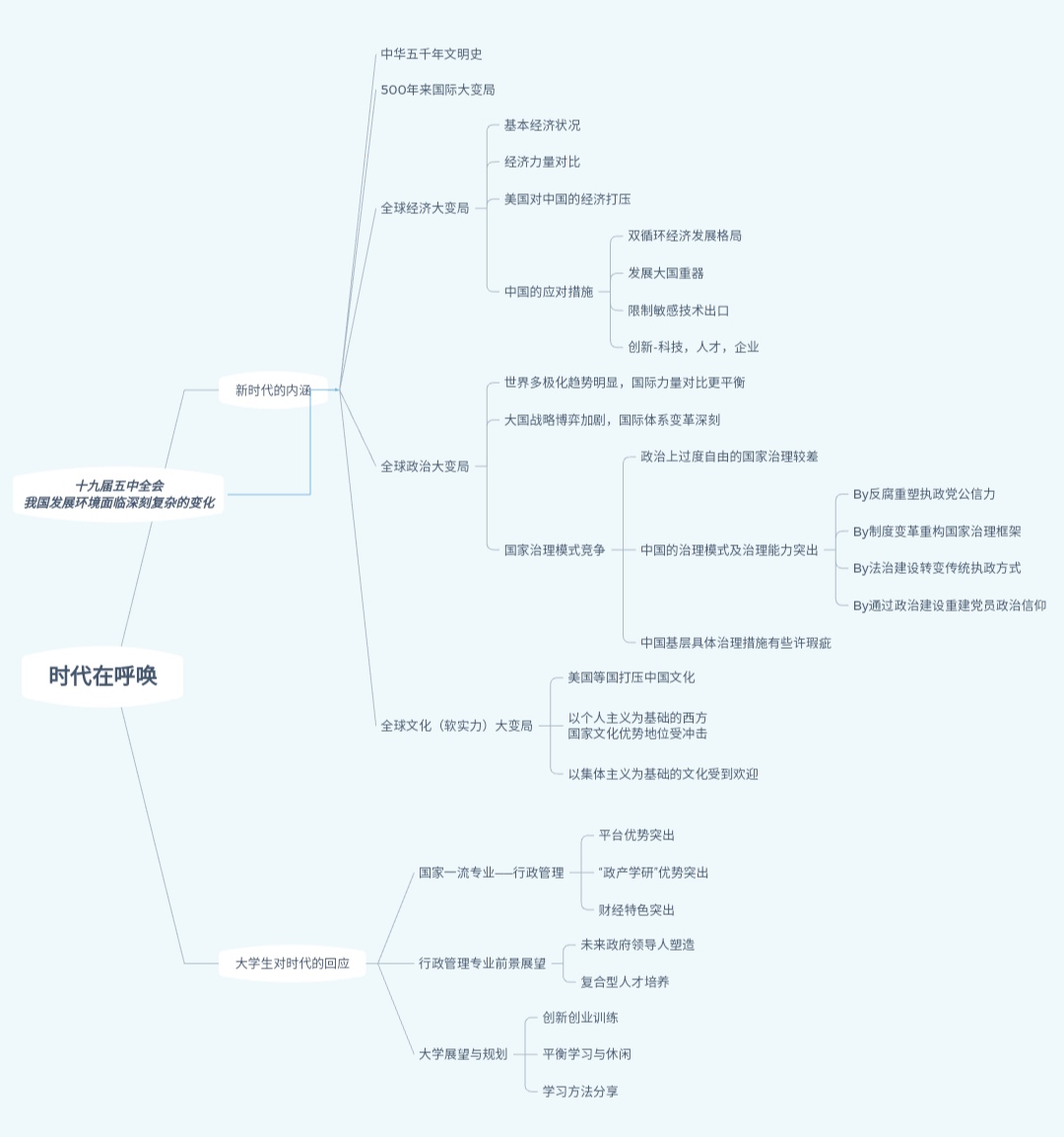 然后,张宝峰老师在讲解“新时代的内涵”时,重点分析了我国面对经济打压的应对措施,以及疫情下中国的治理模式治理能力彰显出的极大优势,中国文化、集体主义彰显的强大力量。在讲解“大学生对时代的回应”时,从行政管理专业出发,讲解了行政管理专业作为国家一流专业所具有的独特优势,并对其进行前景展望。