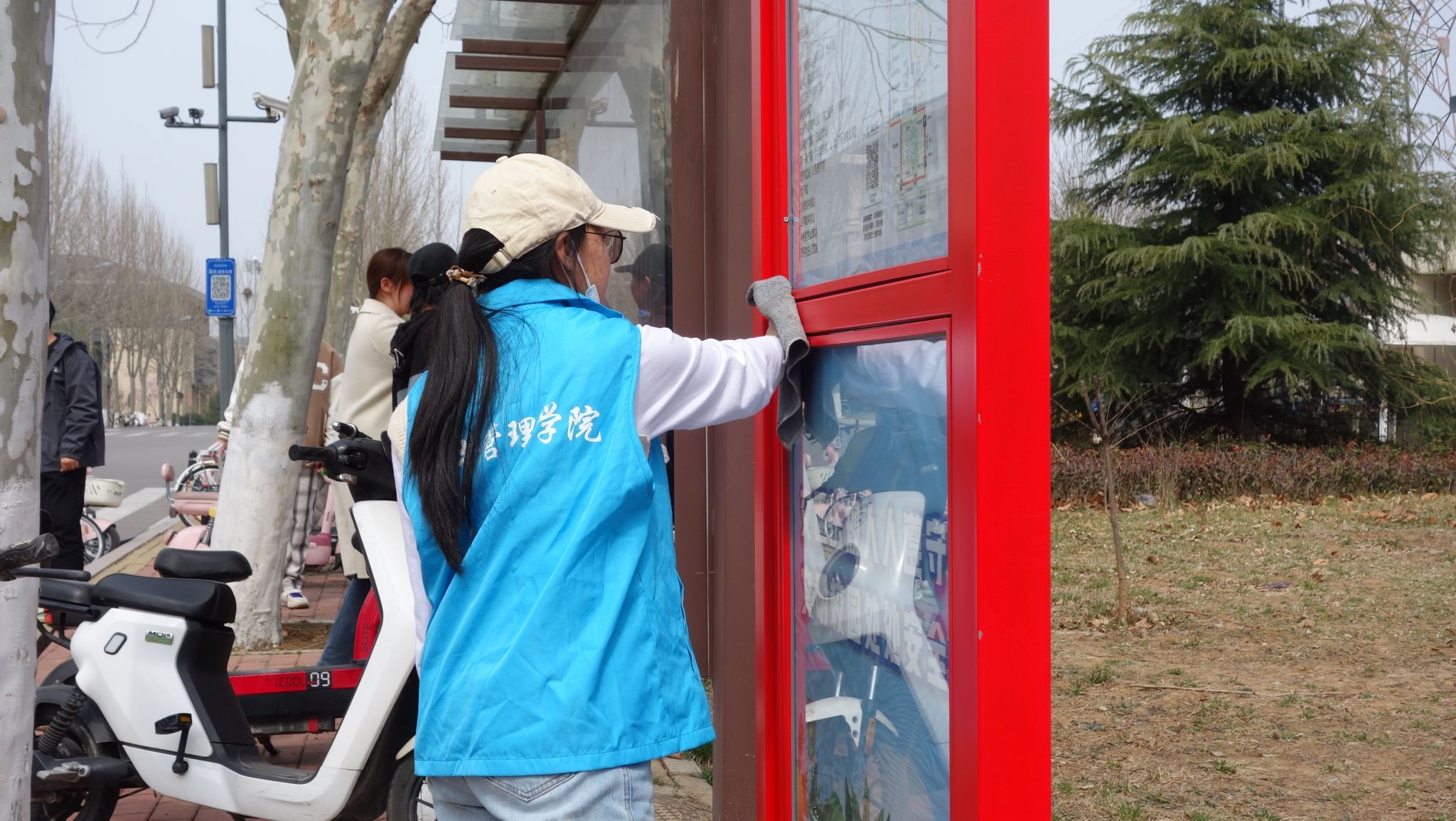 3月23日中午,公共管理学院在章丘校区八号楼周边组织“洁校园·整环境”义务劳动。同学们分工协作,细致擦拭宣传栏与指示牌,规范整理停放车辆,疏通道路交通,清理散落垃圾,以实际行动美化校园环境。