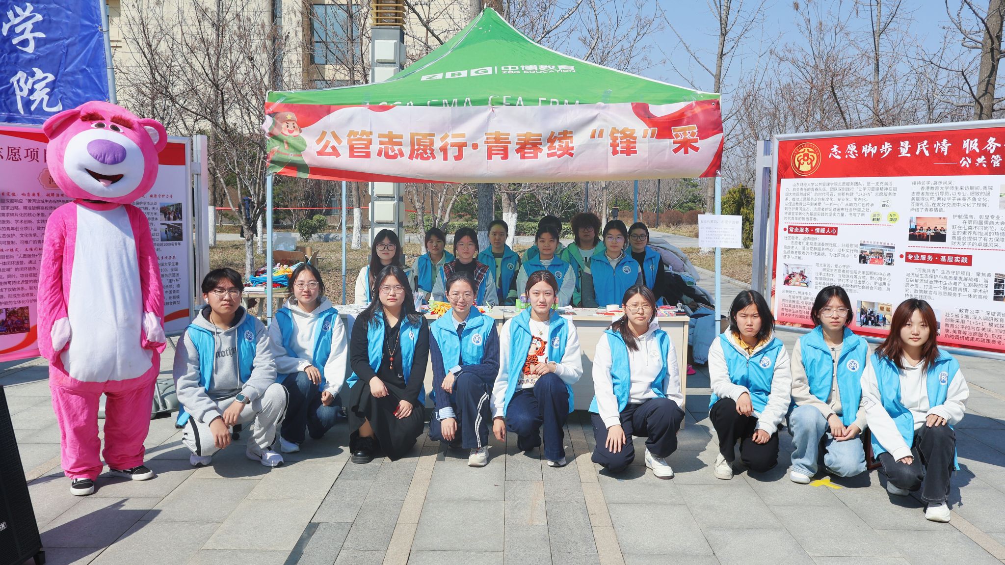 3月19日下午,学雷锋主题游园会在章丘校区地标广场举行。公共管理学院集中展示了助老服务、生态保护、红色文化传承等多项志愿服务成果,“赤心”“青力青为”等优秀获奖项目成为现场亮点,充分体现了公管学子以专业所学服务社会的责任担当。活动现场还设置了投壶传物、雷锋形象拼图、雷锋语录书签DIY等互动环节,并同步开展雷锋知识问答,将思想引领融入趣味体验,吸引众多同学积极参与。