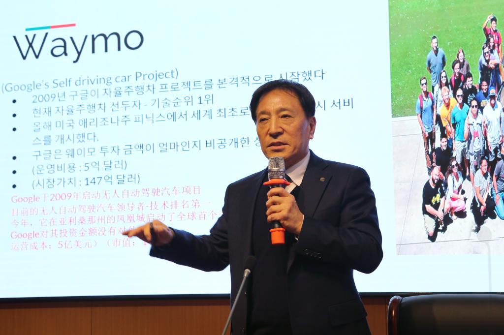 下午,金善在校长做客我院“公共管理大讲堂”暨MPA讲座,围绕“丰田公司无人自动驾驶汽车战略策划,科技创新人工智能技术发展”作了题为《科技创新引领21世纪经济发展》的学术报告,我院院长张红凤、MPA中心副主任牟芳华出席大讲堂,学院研究生、MPA学员近百人聆听了讲座。