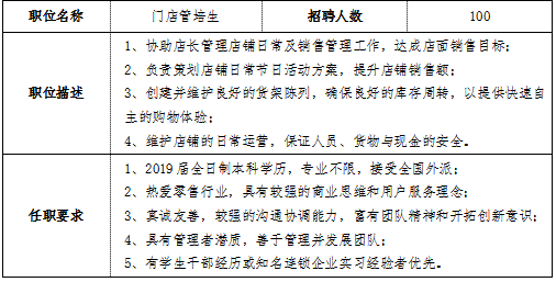 (备注:管培生到店长为一年的培养周期,过程中也会根据具体开店计划和个人学习成长情况有快慢的区分。)