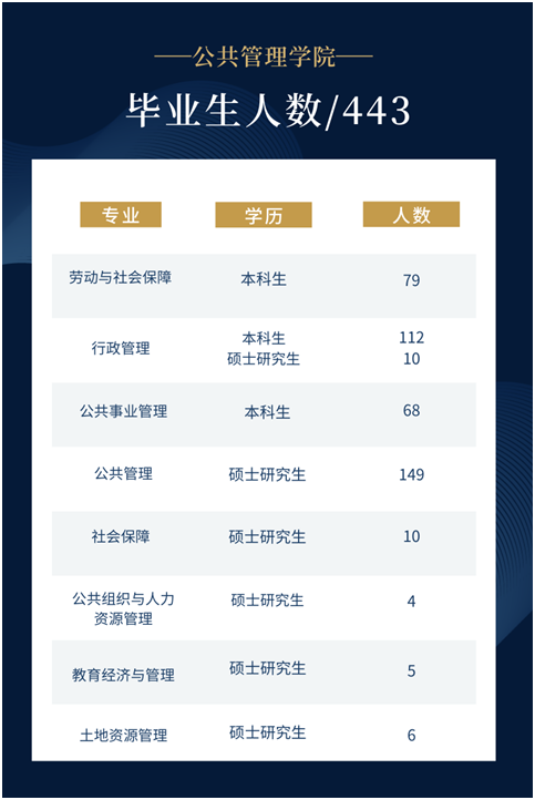 山东财经大学坐落在山东省省会济南市,是财政部、教育部、山东省共建高校,是一所办学历史悠久、财经特色鲜明、综合实力突出,兼有文、法、理、工、教育、艺术等八大学科门类,在国内外有较高声誉和知名度的高等财经院校。山东财经大学工商管理学院现有毕业生887人,公共管理学院现有毕业生443人。山东财经大学注重学生多方面能力的培养,毕业生受到了用人单位的广泛好评。工商管理学院2022届毕业生有60余人获得省级优秀毕业生,100余人获得校级优秀毕业生,10余人获得山东财经大学校长奖学金,30余人次获国家奖学金,50余人次获得省政府奖学金,10人被评为省级优秀学生,2人被评为省级优秀学生干部,1个班级获得省级优秀班集体。公共管理学院2022届毕业生有18人获得省级优秀毕业生,53人获得校级优秀毕业生,4人获得山东财经大学校长奖学金,2人获得国家奖学金,2人获得省政府奖学金,2人被评为省级优秀学生,1人被评为省级优秀学生干部,1个班级获得省级优秀班集体。