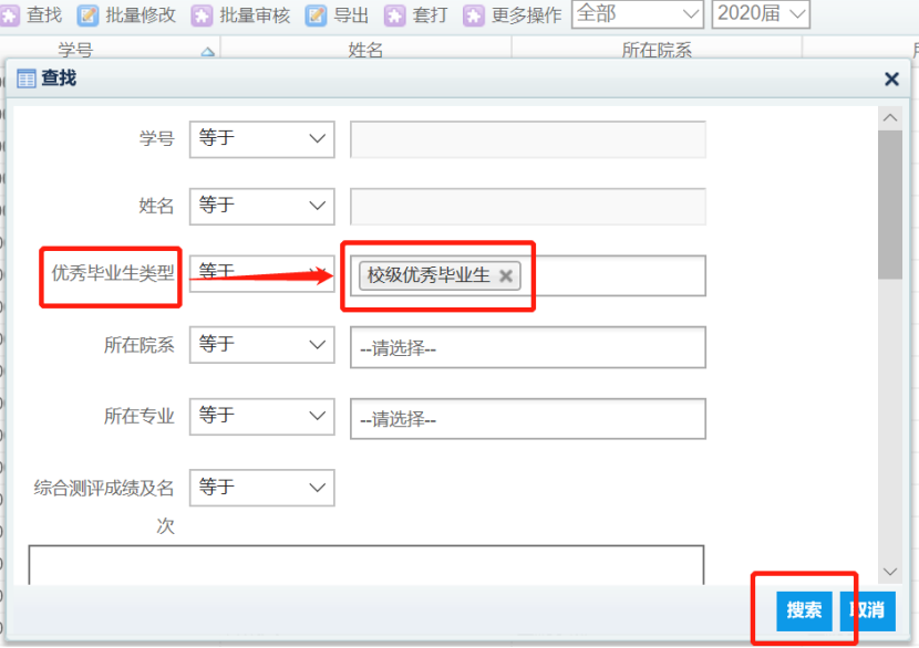 第一步:学校进行校级毕业生初选设置