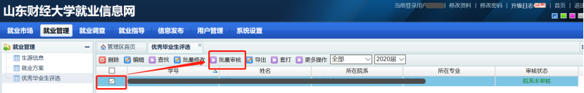 (1)学院登录山东财经大学就业信息网,选择就业管理,点击优秀毕业生评选,再点击查找。