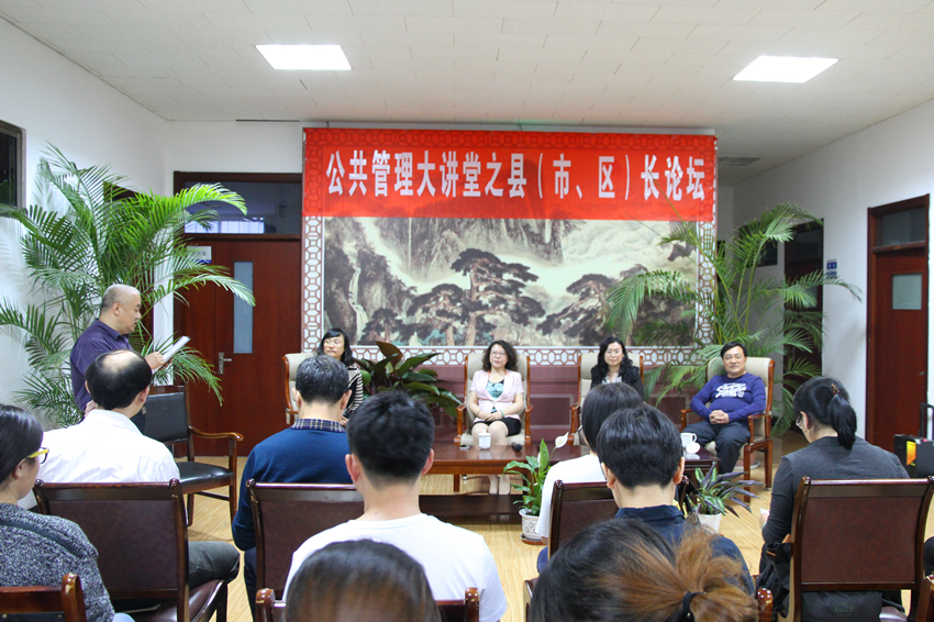 5月4日,应张红凤院长邀请,青岛市李沧区副区长孙晋华,济南市槐荫区副区长印东,淄博市沂源县副县长李玲,淄博市周村区副区长李寅萍出席公共管理大讲堂之县(市、区)长论坛。论坛由公共管理学院副院长李国锋主持,院长张红凤致欢迎辞。我院2014、2015级研究生和学院骨干教师参加了此次论坛。