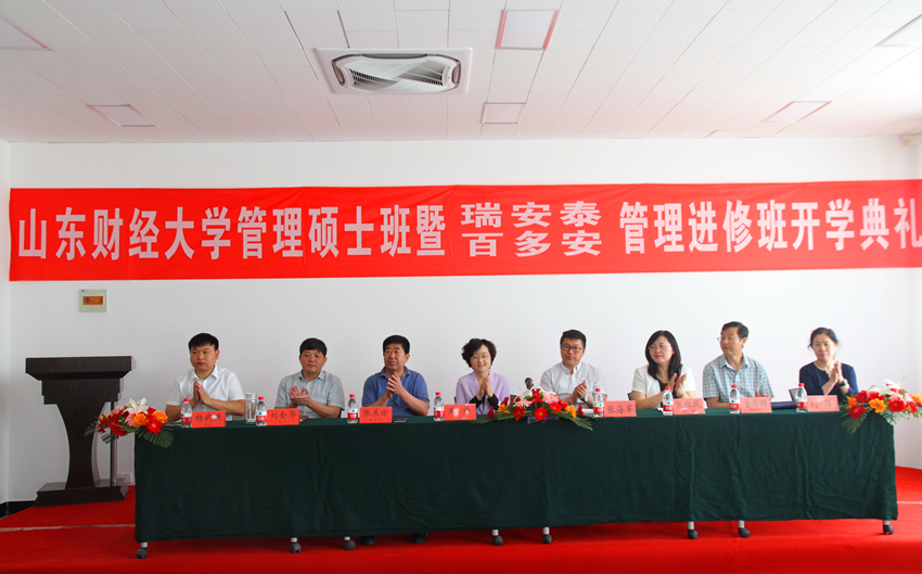 5月31日,我院承办的山东百多安医疗器械有限公司、山东瑞安泰医疗技术有限公司“行政管理专业在职研究生课程进修班” 暨“管理人员培训班”开学典礼仪式在齐河县高新区举行。齐河县副县长张东方、王炜,齐河县人社局局长刘金华,齐河县高新区党工委书记杨武强,山东财经大学公共管理学院院长张红凤、副院长董西明等出席本次开学典礼,本次活动由山东百多安医疗器械有限公司总经理助理、人力资源部经理周霞主持。