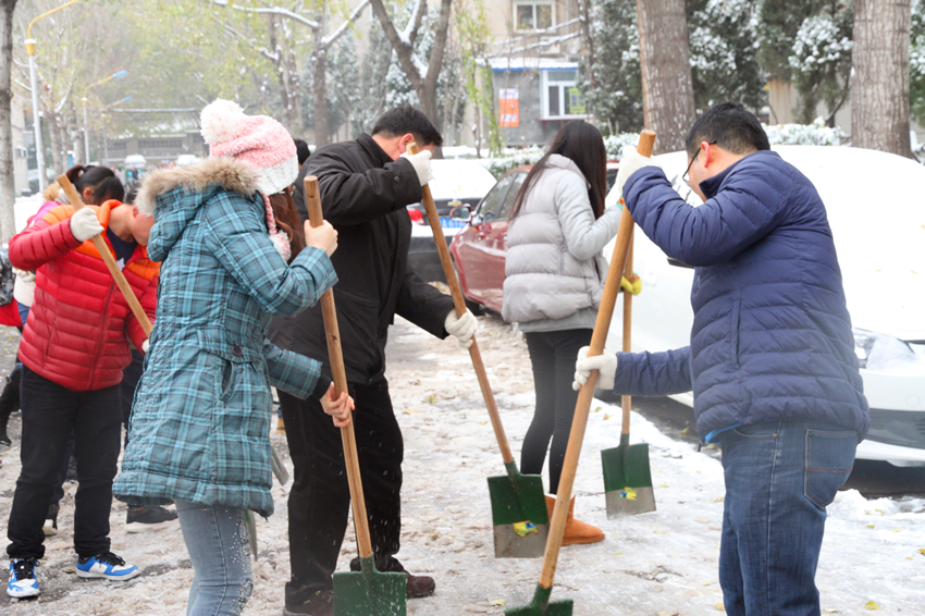 为保障校园内车辆行驶和行人安全,按照学校要求,11月25日(周三)上午,公共管理学院组织学院师生员工进行校园积雪清扫活动。