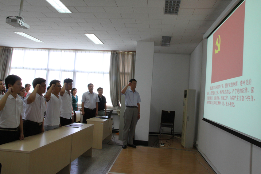 宣誓大会在雄壮的国歌声中开始,党委副书记周炎领读誓词进行宣誓,全体新党员举起右手,握紧拳头,面对党旗,庄严宣誓,这一时刻将永远铭记在全体党员内心深处,鞭策大家时刻以一名党员的标准严格要求自己。