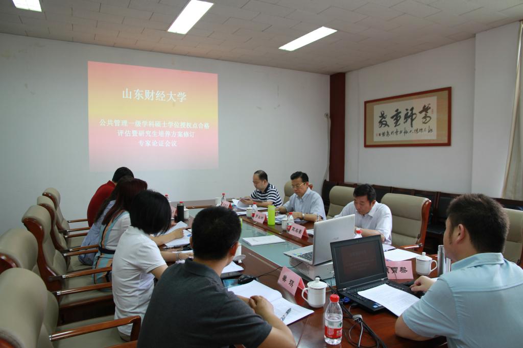 (通讯员 贾海彦)2018年6月21日,我院召开了公共管理一级学科硕士学位授权点合格评估暨研究生培养方案修订专家论证会议。聘请的专家有:教育部公共管理学科评议组成员、陆军军医大学原校长罗长坤教授,长江学者、浙江大学公共管理学院院长郁建兴教授,教育部公共管理类学科教学指导委员会副主任委员、南京农业大学公共管理学院欧名豪教授,江西财经大学财税与公共管理学院院长李春根教授,山东财经大学研究生院副院长杨明海教授。评估专家组成员由罗长坤教授、郁建兴教授(远程视频)、欧名豪教授组成,罗长坤教授担任评估专家组组长。学院院长张红凤、副院长贾海彦、路军、院长助理焦霄黎以及各专业系主任、副主任共约10余人参加了会议。