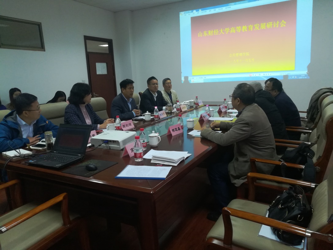 (通讯员 宋燕 高文燕 于腾)2018年11月5日,山东财经大学高等教育发展研讨会在我院4308会议室召开。我国著名高等教育专家薛天祥教授、华东师范大学张万朋教授、广州大学杨运鑫教授、中南大学庞青山教授、山东财经大学科研处处长张志元教授、山东财经大学国际交流与合作处处长王剑波教授、山东财经大学公共管理学院党委书记李国强教授、山东财经大学党委宣传部部长于洪良副教授、山东财经大学高等教育研究室副主任苗文利副教授、山东财经大学公共管理学院公共事业管理系副主任宋燕副教授以及部分研究生出席研讨会。研讨会由王剑波教授主持。