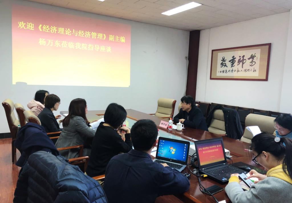 (通讯员 郭霞)11月22日下午,我院邀请《经济理论与经济管理》杨万东副主编做客我院,围绕2019年度“两金”申报及高水平论文选题及写作技巧,与我院科研骨干教师展开座谈。座谈会由公共管理学院院长张红凤教授主持。