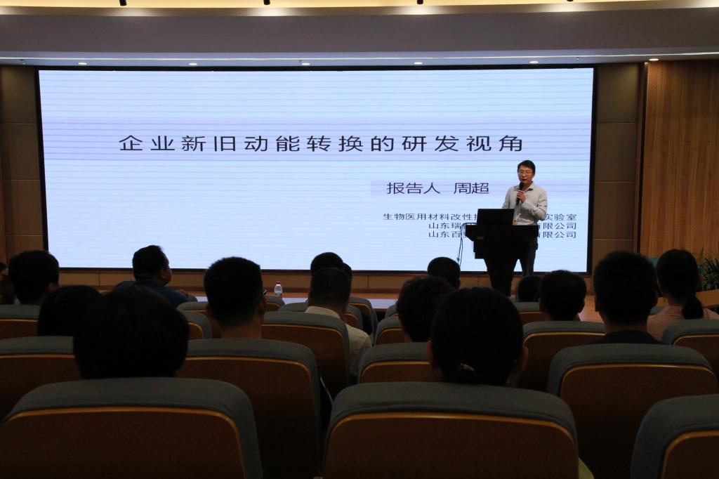山东百多安医疗器械有限公司(新旧动能示范基地)的周超博士结合公司新旧动能转换的研发视角,系统讲解了战略性新兴产业领域的发展及前景,生动表述了中国各产业技术创新的必要性和紧迫感。