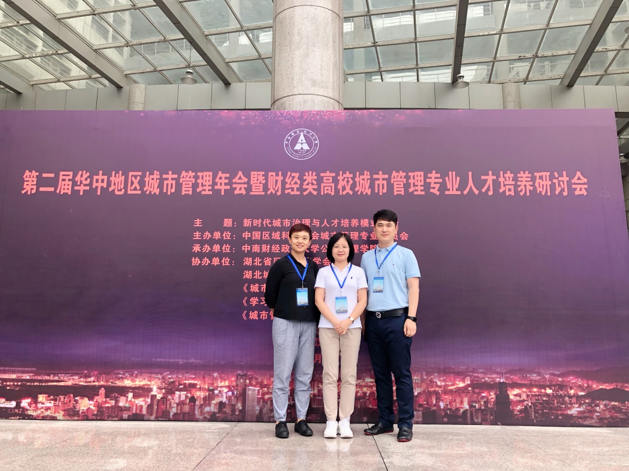 (通讯员 曲衍波)2019年6月28-29日,第二届华中地区城市管理年会暨财经类高校城市管理专业人才培养研讨会在中南财经政法大学成功举办。来自华中地区及全国财经类开办城市管理专业的20所高校近60名师生参加本次会议。贾海彦副院长及城市管理专业曲衍波和韩琭老师受邀参加年会。