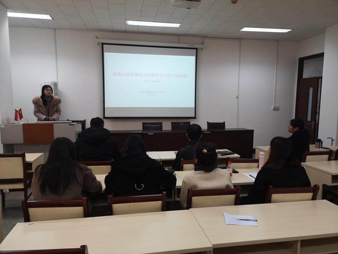 (通讯员 王超 摄影 李旭日)2019年12月25日上午,我院在燕山校区举办学工干部心理健康专项技能培训,特邀我校大学生心理咨询中心盛明明老师做了《浅谈心理咨询技术在辅导员工作中的应用》专题讲座,学院党委书记李国强,党委副书记周炎、吕晓燕和全体辅导员老师参加了活动。