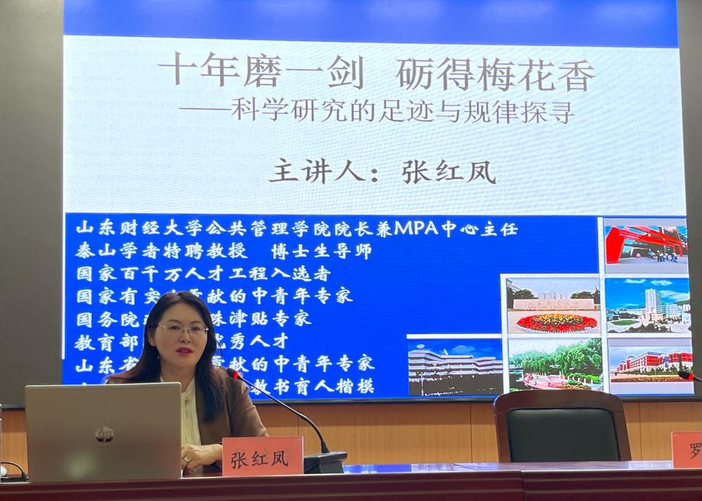 (通讯员 许慧振、李岳、陈晓彤,摄影 于伟庆)2021年11月11日下午2点半,公共管理大讲堂(第六十八讲)在燕山校区三号楼报告厅举行。此次大讲堂是山东财经大学“科学道德和学风建设专题讲座”活动、庆祝建院20周年学术系列活动中的一项重要内容。讲座由公共管理学院院长兼MPA中心主任、博士生导师、泰山学者特聘教授、“国家百千万人才工程”入选者、国家级有突出贡献的中青年专家、享受国务院政府特殊津贴专家张红凤院长主讲,罗微副院长主持。学院2020级、2021级全体研究生参加了讲座。