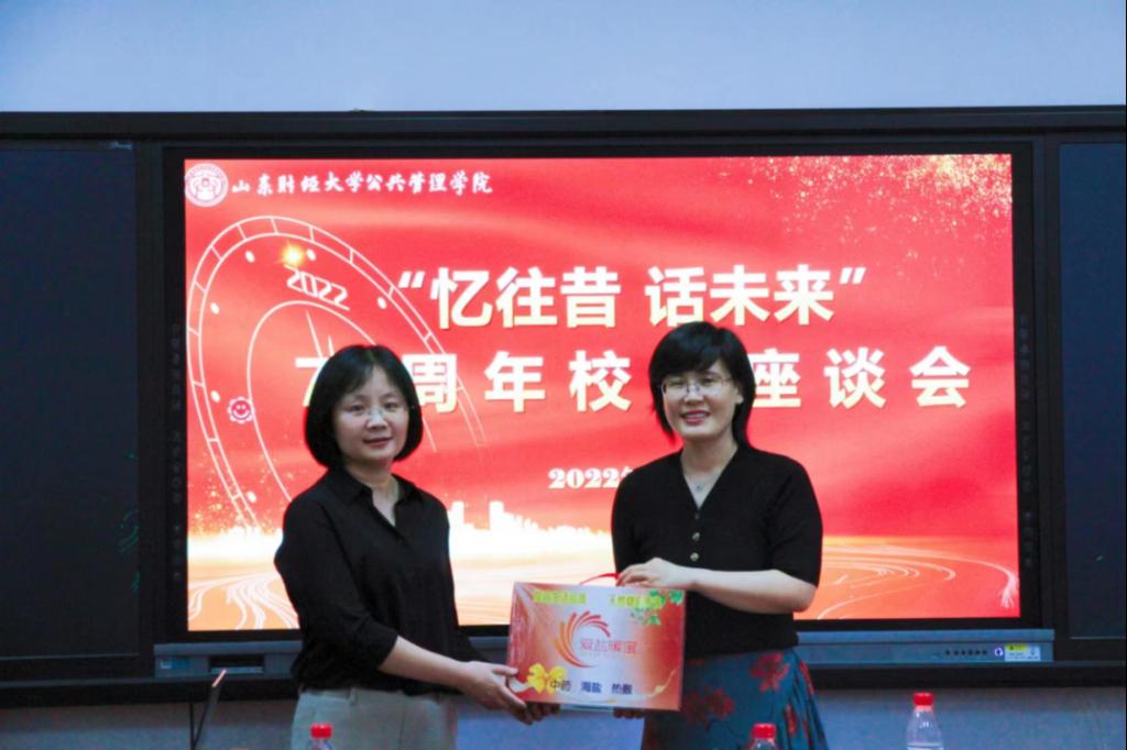 (通讯员陈晓彤)山东财经大学建校70周年暨合并建校10周年华诞来临之际,我院于2022年6月8日下午举行了“忆往昔,话未来”70周年校庆座谈会,3名校友受邀回到阔别已久的母校,追忆同窗旧事,再叙师生情谊,畅谈人生感悟,共话未来发展。公共管理学院原党委书记李国强,公共管理与法学学部(筹)部长、MPA中心主任、公共管理学院原院长张红凤,公共管理学院原党委副书记周炎受邀参加了此次会议。院长贾海彦,党委副书记许薇、王坤,副院长罗微、曲衍波、姜琪以及师生代表参加了座谈会。会议由党委副书记许薇主持。