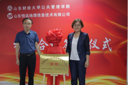 随后,公共管理学院副院长曲衍波、山东恒远总经理丁敏签署了校企共建共建协议书,公共管理学院党委书记张建、山东恒远总经理丁敏为山东财经大学公共管理学院·山东恒远地理信息技术有限公司“自然资源与公共管理教研实践基地”揭牌,双方代表合影留念。