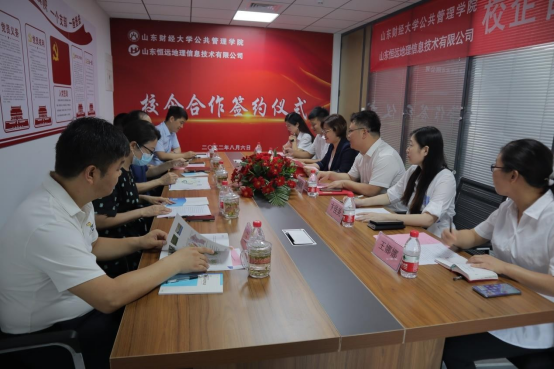 2022年8月6日,山东财经大学公共管理学院与山东恒远地理信息技术有限公司于鲁商凤凰广场1号楼1206举行校企合作签约仪式。