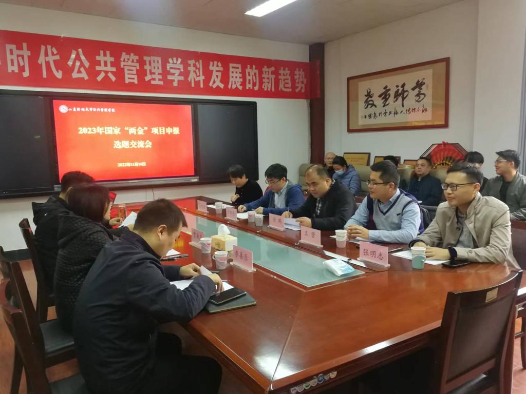 (通讯员 胡亚男)为不断提升教师科研水平,推动学院国家“两金”项目申报工作,我院于11月10日在4308会议室举办了国家“两金”项目申报选题交流会。学院邀请徐鹏教授、王营教授、于新亮教授、杨志恒教授、张明志副教授做了申报经验分享和交流,院长贾海彦、副院长姜琪、李善乐及青年教师参加了会议。会议由副院长姜琪主持。
