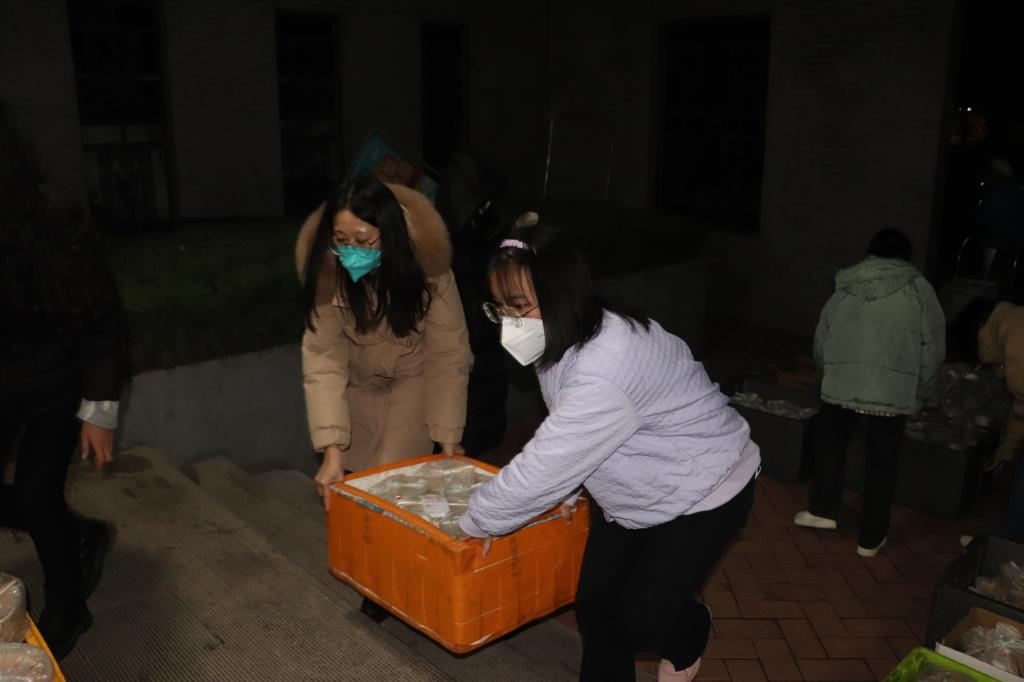 在接到送餐任务后,我院积极响应,辅导员进行组织安排。老师们提前在宿舍楼下就位,准备接餐工作。其中,张辉和张志斌分别在九号楼和四号楼处负责男、女生分餐工作,与楼层长做好对接。接下来,楼层长有序通知舍长到宿舍楼下领取,最终舍长将饭菜分发到每位同学手中,确保每位同学都能及时吃到健康可口的饭菜。一份份饭菜传递手中,使同学们深刻感受到“隔离不隔情,暖人更暖心”的深刻含义。