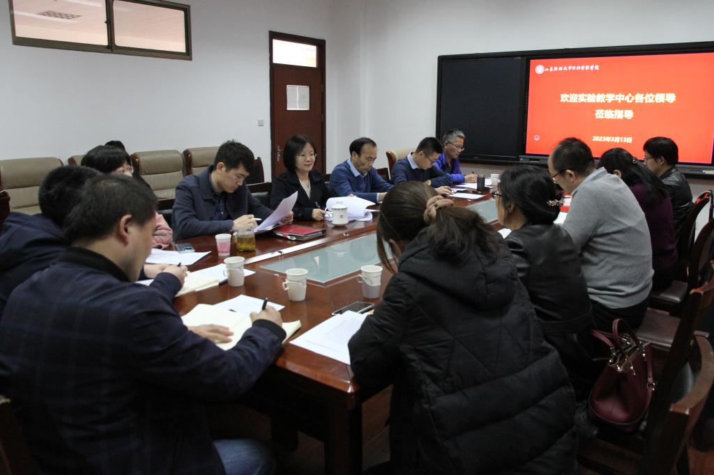 (通讯员 张栋 郭靖)3月13日下午,学校实验教学中心主任李斌、副主任丁鸿雁、周新秀、王卿海及中心教研部主任马林元、教务部主任李建辉、办公室副主任张萍萍一行来学院围绕“新商科实验教学改革与创新”这一主题进行调研。学院党委书记张建、院长贾海彦、副院长罗微、曲衍波及部分实验课程教师代表丁宁宁、吴书光、王龙等参加了此次调研活动。