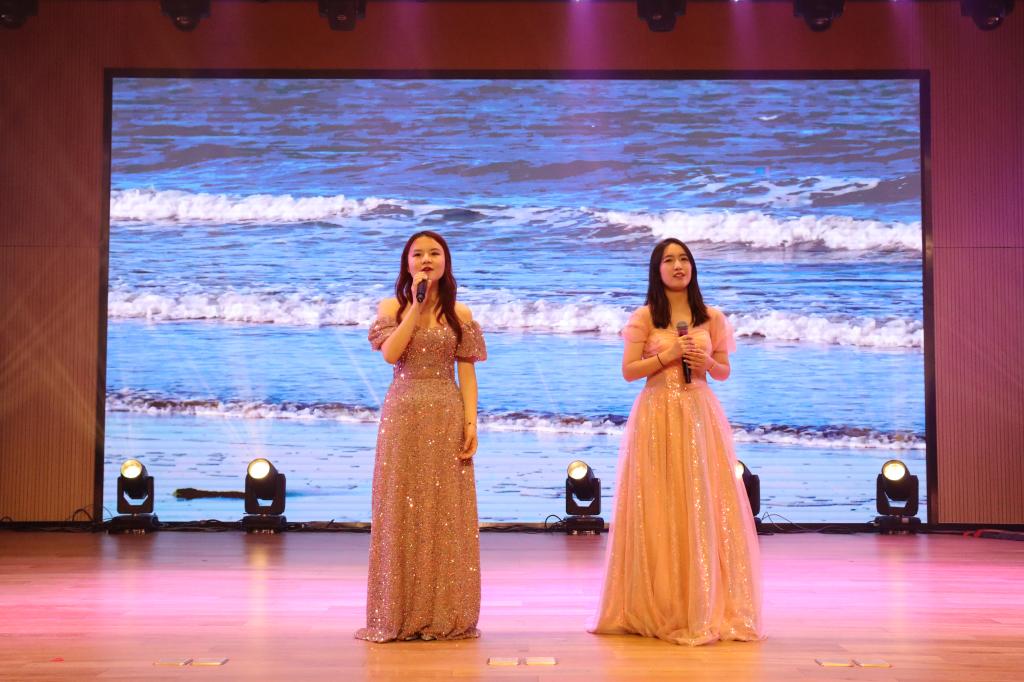 晚会进入第二章:春熙。研究生与本科同学带来的爵士舞蹈串烧《爱你》《what is love》《shut down》,各位舞者青春昂扬的舞姿引发全场阵阵喝彩;学生朗诵《青春礼赞新时代,峥嵘百年新征程》饱含敬意与激情,激励大家不做空想,不骛虚声,厚德笃志,守正创新;模特走秀《youth》将气氛带入高潮,男生女生们身着笔直的西装与华丽的礼服,步伐潇洒自信,神采飞扬,现场尖叫不断;师生合唱《带我去很远地方》以轻柔抒情的歌喉将梦想与自由倾注在音乐中、回荡在观众耳畔,展现了我院师生同心同德,共创美好的师生情谊和公管情怀。