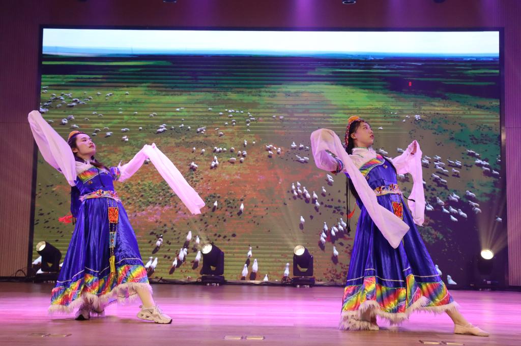 晚会来到第三章:春和。相声《双字意》,2022届优秀校友陈广昊与两个搭档一捧一逗,将我国国粹融汇进诙谐的逗趣中,生动有趣,现场欢声笑语不断;民族大联欢《美丽中国》,民族舞者们身着各具特色的民族服饰,在激昂澎湃的歌声中翩翩起舞,婀娜的身姿宛若一朵朵绚烂绽放的民族之花。最后,晚会在大合唱《相亲相爱》的亲切旋律中圆满落幕,演唱者们的歌声沉稳与奔放并存,传递给同学们希望与爱意。