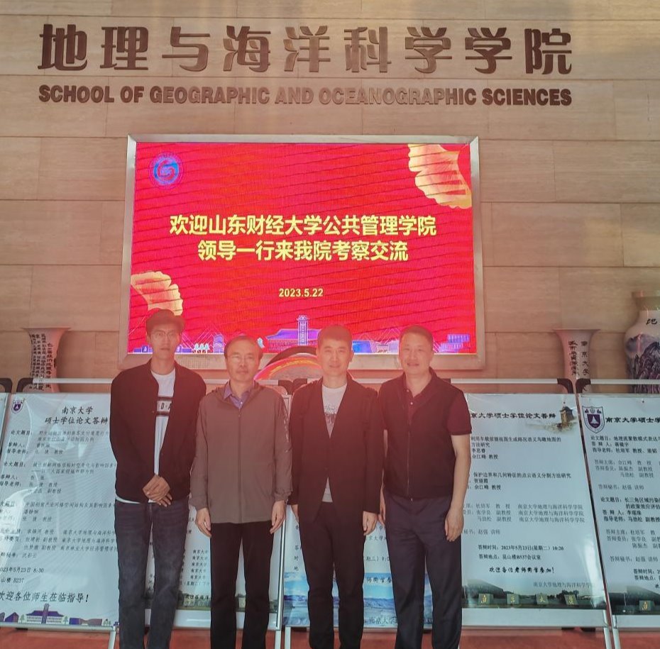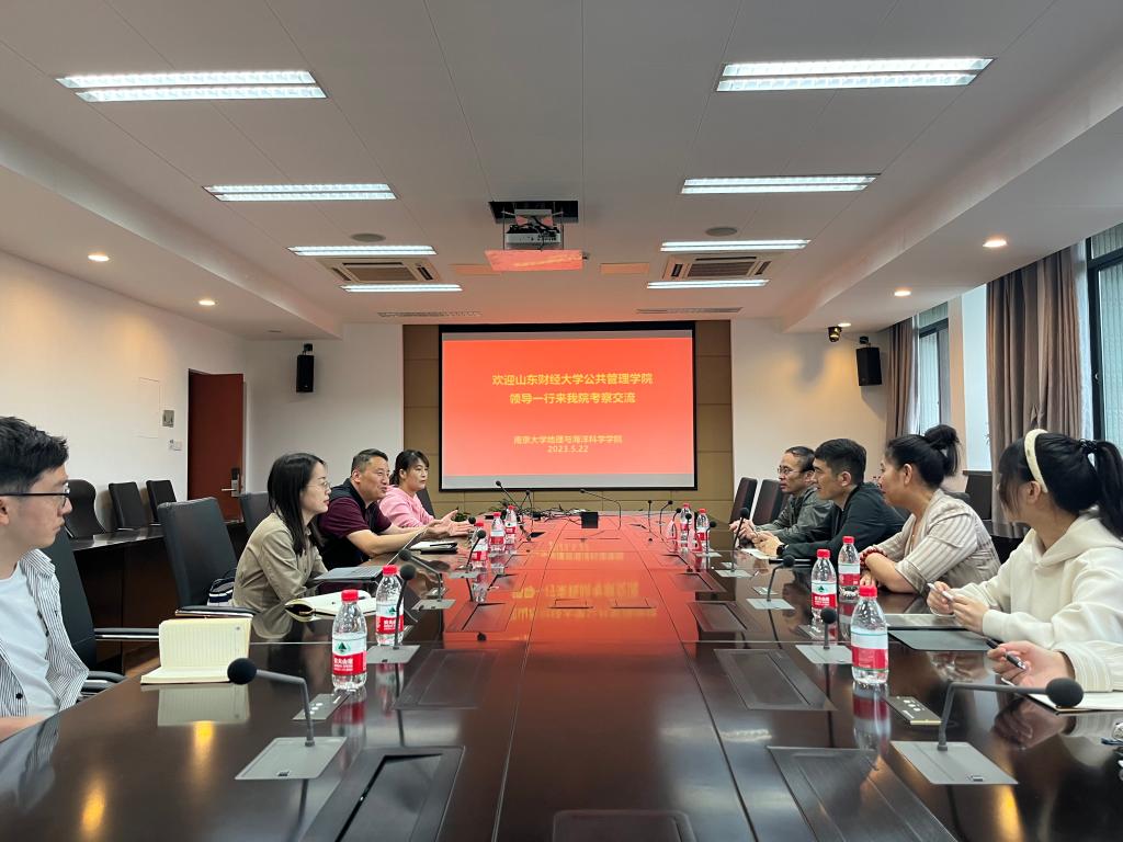 5月22日,学院党委书记张建、副院长曲衍波带领部分博士研究生,前往南京大学地理与海洋科学学院开展调研交流活动。南京大学地理与海洋科学学院金晓斌副院长、刘晶助理研究员、徐伟义博士、王世磊博士、南京财经大学公共管理学院范业婷参加座谈交流。