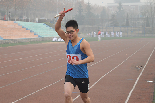 下午3时,比赛在明水校区的田径场上准时鸣枪开赛。我院的11名运动员斗志昂扬、步伐矫健、奋力拼搏,在比赛中表现出良好的精神风貌和拼搏精神;我院的学生会成员在为运动员们提供周到细致的服务保障的同时,积极组织组织“啦啦队”为运动员们加油呐喊助威,他们情绪高涨、热情似火,呐喊声、加油声响彻整个田径场,为参赛的11名选手增加了力量,在为校园增添激情与活力的同时,仿佛使大家忘却了冬季的寒意。经过激烈的角逐,在公共事业1501班刁明磊、田振旺,城市管理1501班管李嘉鑫,劳动与社会保障1501班李研,劳动与社会保障1503班李阳、李雯静、刘瑞,行政管理1502班刘银银,行政管理1501班税宇和来自14级的黄卫平、侯英欢等11名同学的共同努力下,公共管理学院代表队以36分钟29秒34的成绩一举夺得此次接力赛冠军。