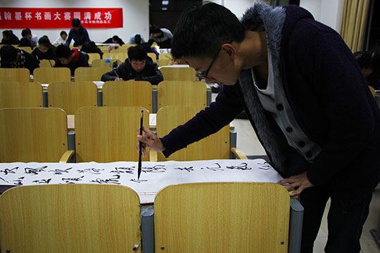 11月14日晚6:30,由我院学生会宣传部和校书画协会共同主办的山东财经大学第五届“翰墨杯”校园书画大赛在明水校区2211、2206教室举行,全校共近百名同学到场参加本次比赛。