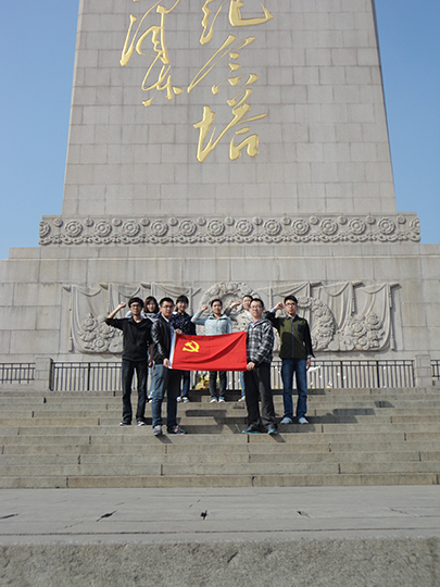 4月3日下午,2012级、2013级研究生党支部及本科生支部的部分同志,在党支部书记的带领下,参加上述清明活动。“桃花红雨英雄血,碧海丹霞志士心。今日神州看奋起,陵园千古慰忠魂”。在英雄山革命烈士纪念碑前,同学们带着沉重肃穆的心情,对英雄烈士鞠躬致敬,默哀悼念,敬献鲜花。党员代表颂“烈士颂”,并带领全体同志重温入党誓词,以此来告慰先烈的灵魂,接受心灵的洗涤,缅怀革命精神。同学们围绕革命烈士纪念碑一周后,走进济南战役纪念馆,对烈士的先进事迹进行观摩学习。看着泛黄的书页、破旧的棉絮和生锈的枪炮,同学们寻找着历史的足迹与沧桑,心理久久不能平静。在山东省党史馆,记载着山东党的组织发展史,更是山东各界党员带领人民进行革命斗争的历史,面对烈士们用鲜血和生命铸就的共和国,同学们更加认识到今天的幸福生活来之不易,需要加倍珍惜,并接过历史的接力棒,继续奋斗不止。