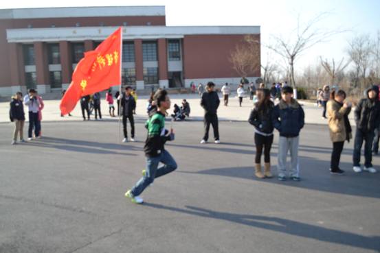 在赛前,山东财经大学学生会秘书长纪宁健介绍了本次比赛的目的以及纪念意义。在短暂的准备之后,第一棒选手就位,随着发令员一声枪响,比赛正式开始,选手们你争我赶,各不相让,凛冽的寒风瞬间被选手们的热情点燃,我院选手发扬了高尚的体育精神和顽强的拼搏意识,在领先时继续创造优势,在落后时不急不躁,努力超越;选手们凭借个人的优秀素质和团队和默契配合,顺利完成比赛。