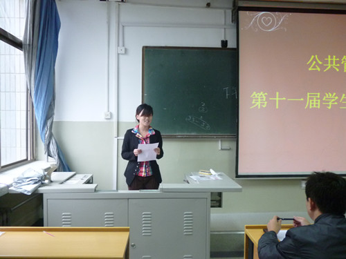 10月17日下午2时30分,公共管理学院第十一届学生会竞选大会1606教室举行。公共管理学院党总支副书记周炎,团总支张辉、李广华、李昭娜出席此次大会。我院第十届学生会主席团成员、2010级学生代表共60余人参加了此次大会。会议由李昭娜老师主持。