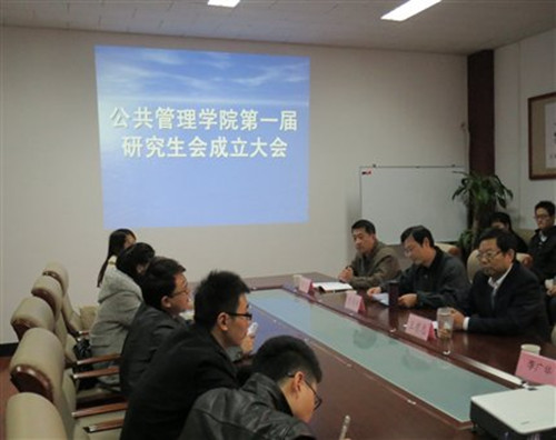 2012年11月9日,公共管理学院首届研究生成立大会在学院会议室举行,学院党总支王有志书记,周炎副书记,董西明副院长,研究生辅导员李广华老师以及首届研究生会全体成员参加了会议。