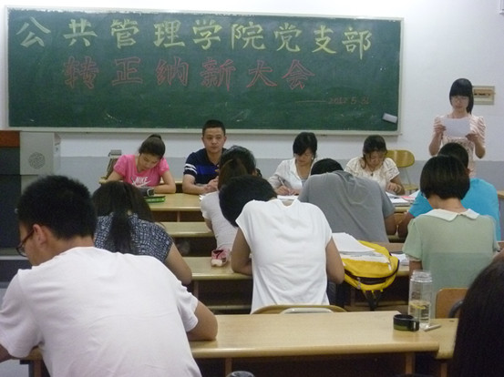 会议前期,由预备党员宣读转正申请并对他们进行民主评议,与会正式党员进行投票,同意张元浩等预备党员正式成为中共党员。在纳新环节,发展对象郑重宣读入党申请书,有入党介绍人介绍其在校表现情况并宣读函调情况。经过严格的程序,由张辉老师宣布支部决议,同意洪达等同学成为正式成为中共预备党员。全体参会成员鼓掌欢迎。