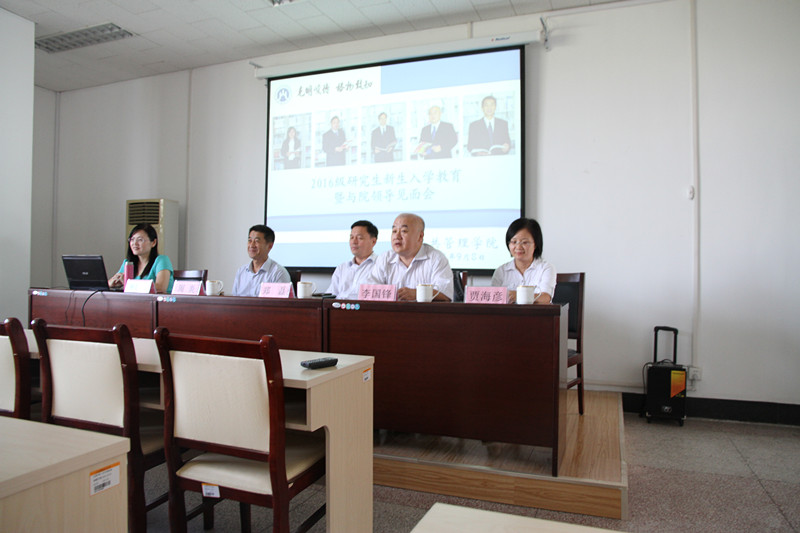 2016年9月8日下午,我院在燕山校区4407举行了2016级研究生新生入学教育暨与院领导见面会。院长张红凤,党委书记郑磊,副院长李国锋,党委副书记周炎,院长助理贾海彦,教学秘书朱艳,辅导员李昭娜以及2016级全体新生出席此次会议,会议由副院长李国锋主持。