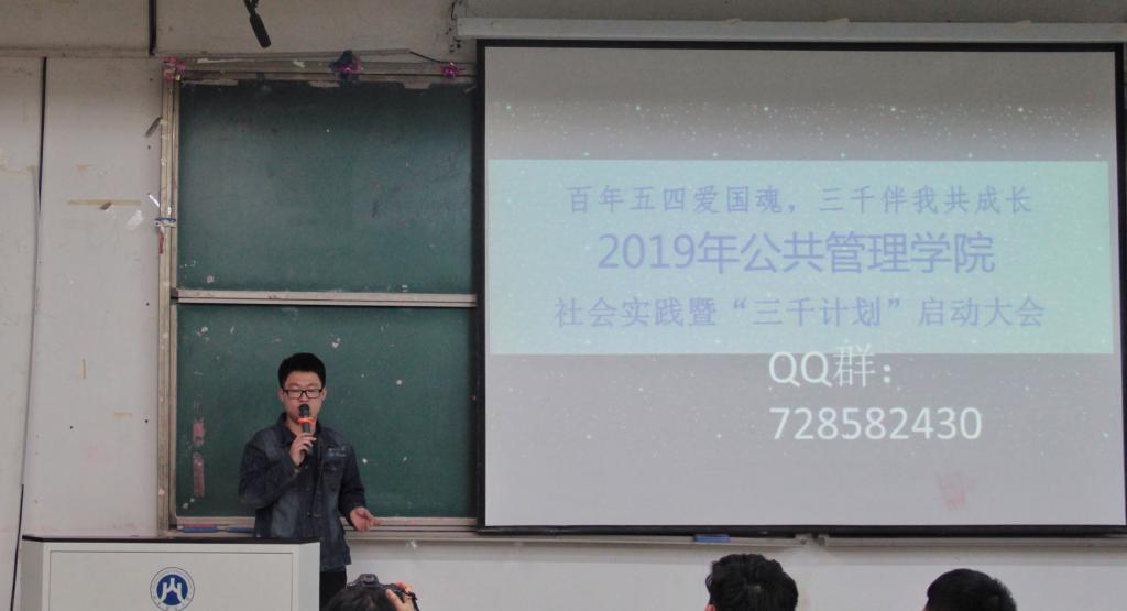 (通讯员 任志原 摄影 俞淑洁 毛荫璇)4月24号晚,我院实践创新部在5206教室开展“公共管理学院三千计划启动大会”。本次会议由实创部副部长李宝良同学主持,全体18级同学参会。
