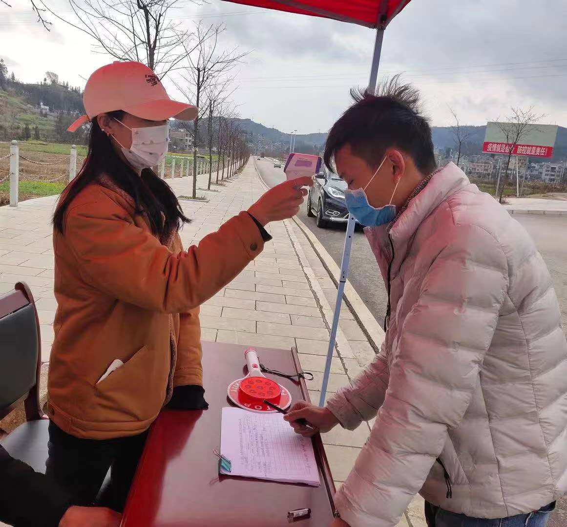 从正月初八开始,该村应上级的通知在村口设卡,限制人员出入。尹若西同学每日下午前去帮助拦截外来车辆,测量进出村人员的体温,并帮助村委会统计进出车辆和人员的信息。