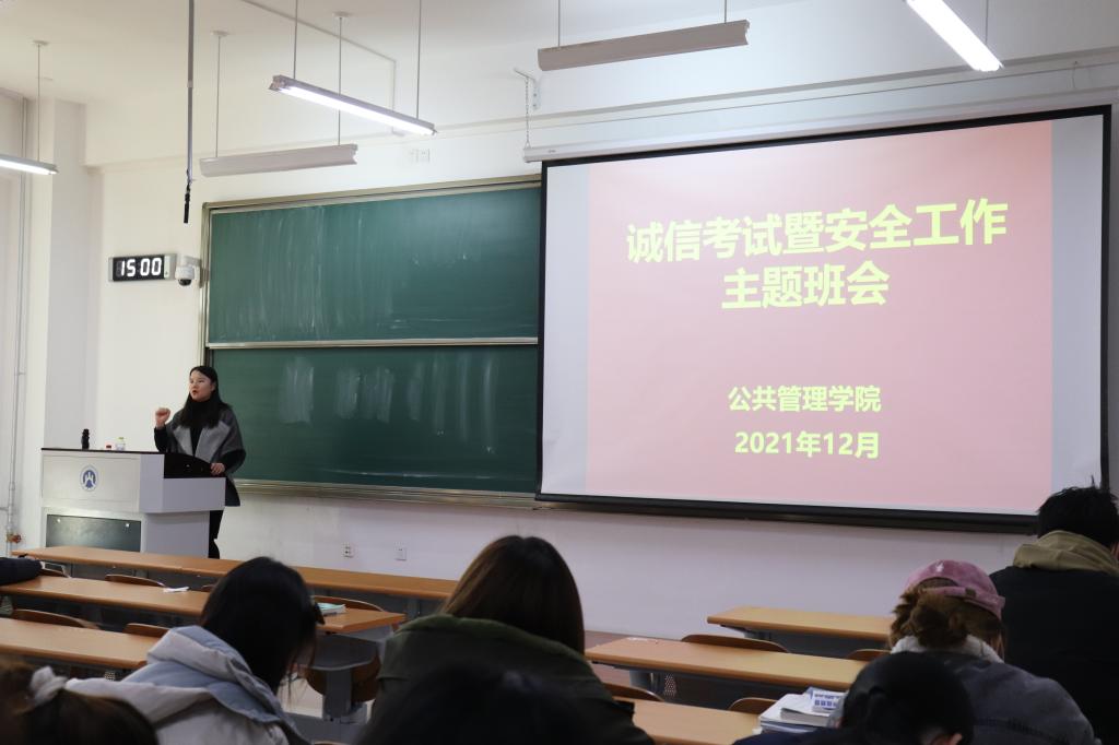 (通讯员 孙向阳 摄影 周蓝梦)为严肃考风考纪,调整考生心态,12月20日下午,我院于圣井校区8104、8106教室召开诚信考试暨安全工作主题班会,会议由2020级辅导员韩步彤、2021级辅导员张辉主持,我院圣井校区全体学生参加。