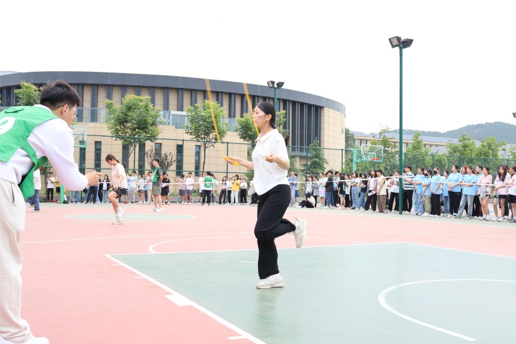 (通讯员 张心仪 摄影 田怡帆)为提高学生身体素质,展现当代大学生良好的精神风貌和积极进取的拼搏精神,5月25日下午,学校体育文化节花样跳绳比赛于圣井校区篮球场顺利举行,公共管理学院学子积极参与,奋勇争先,比赛现场处处朝气蓬勃,青春洋溢。
