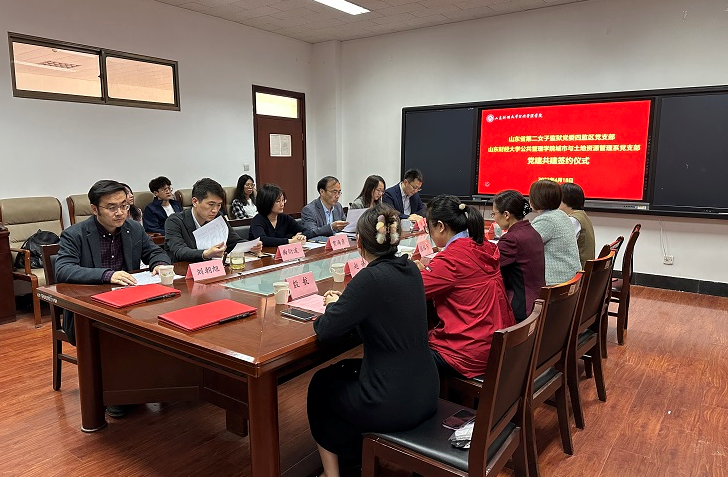 为深入学习贯彻党的二十大精神,增强党建活力,提升党支部建设水平,构建“资源共享、优势互补、共同进步、联手双赢”工作新格局,4月18日下午,山东财经大学公共管理学院城市与土地资源管理系党支部与山东省第二女子监狱党委四监区党支部党建共建签约仪式在燕山校区举行。