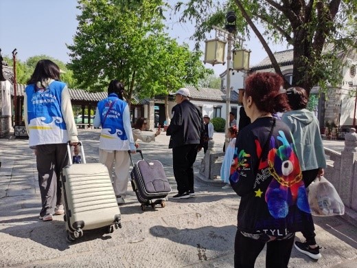指明路线、搬运行李、作伴聊天,志愿者们当起了游客们的“小导游”。游客与志愿者们结伴而行的场景俨然成了景区内一道亮丽的风景线,他们畅聊泉城美景、分享趣闻轶事,游客称赞连连。
