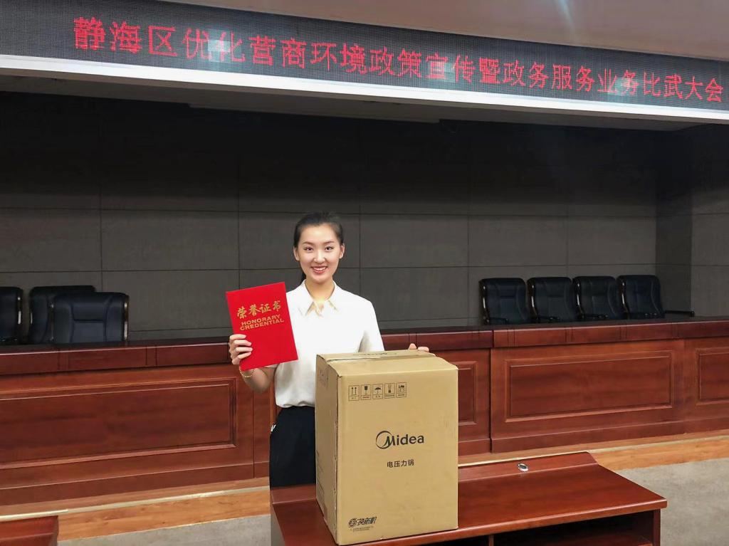 俞淑洁,女,中共党员,公共管理学院行政管理专业2022届毕业生,在校期间曾担任宣传委员,获得一次一等奖学金,两次二等奖学金,获得优秀共青团员称号。该生考取2022年天津市市考、国考、山东省枣庄市峄城区“人才优选”均成功上岸,现就职于天津市静海区人民政府政务服务办公室。该生立足岗位,踏实服务群众,忠于职守,时刻牢记“群众事,无小事”。深化“放管服”改革,加快建设一流营商环境,推动经济社会高质量发展。推动工程建设项目改革,大力推进落实“一制三化”要求, 提高项目审批服务效率。完成内外资企业备案、核准及政府投资项目审批工作,包括指导项目单位完成网上申报,完成项目线上线下审核、接件、受理、办结等相关工作。完成各类项目备案、核准、审批共213件,主动上手帮助企业熟悉并完成备案,真正做到“不见面”审批,全年完成自动备案620余件。参加静海区优化营商环境政策宣传暨政务服务业务比武大会,获得一等奖。